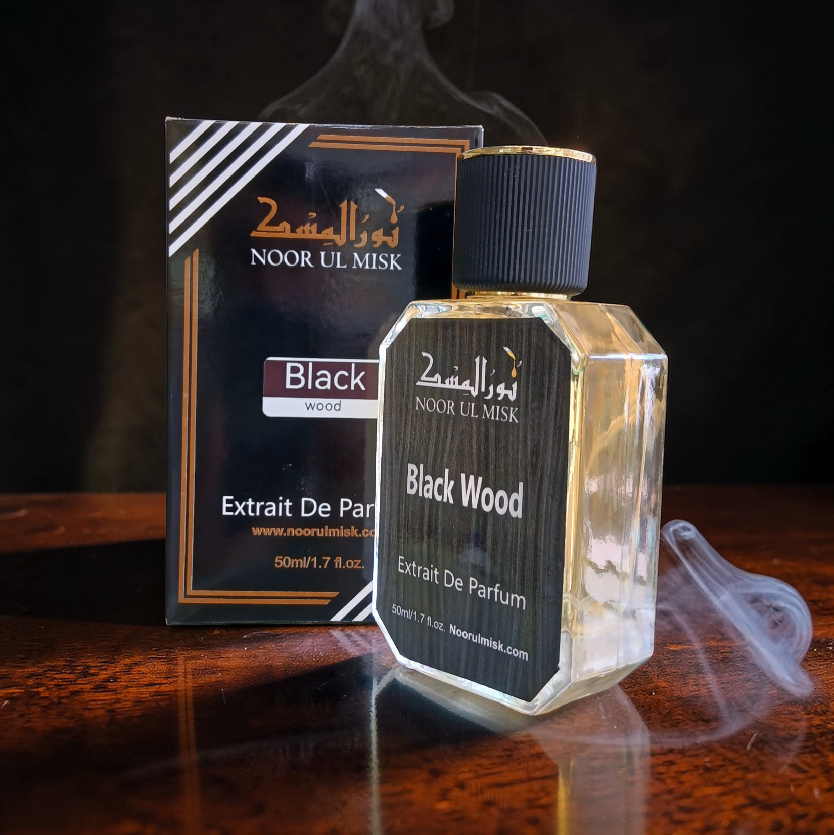 Black Wood by NOOR UL MISK is a bold, unisex perfume that blends dark mystery with luxury. It is a powerful scent designed to last all day and leave a strong impression.